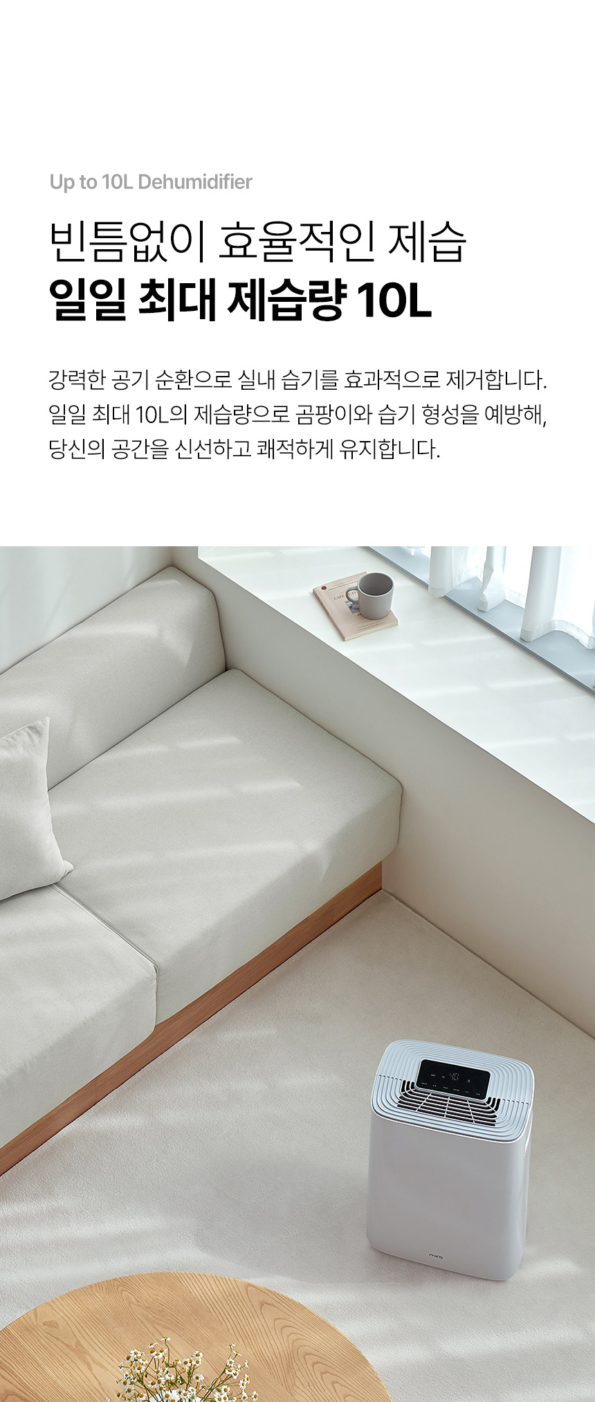 365일 안정적인 습도로 집안을 쾌적하게! 빈틈없이 효율적인 제습으로 일일 최대 제습량 10L