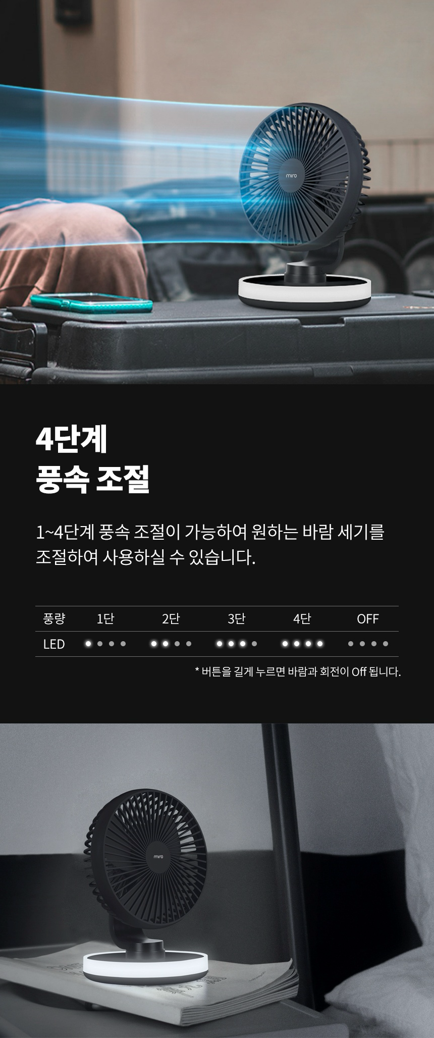 미니팬이지의 풍속은 총 4단계로 조절할 수 있어요. 각 단계마다 이런 상황에 딱이더라고요: