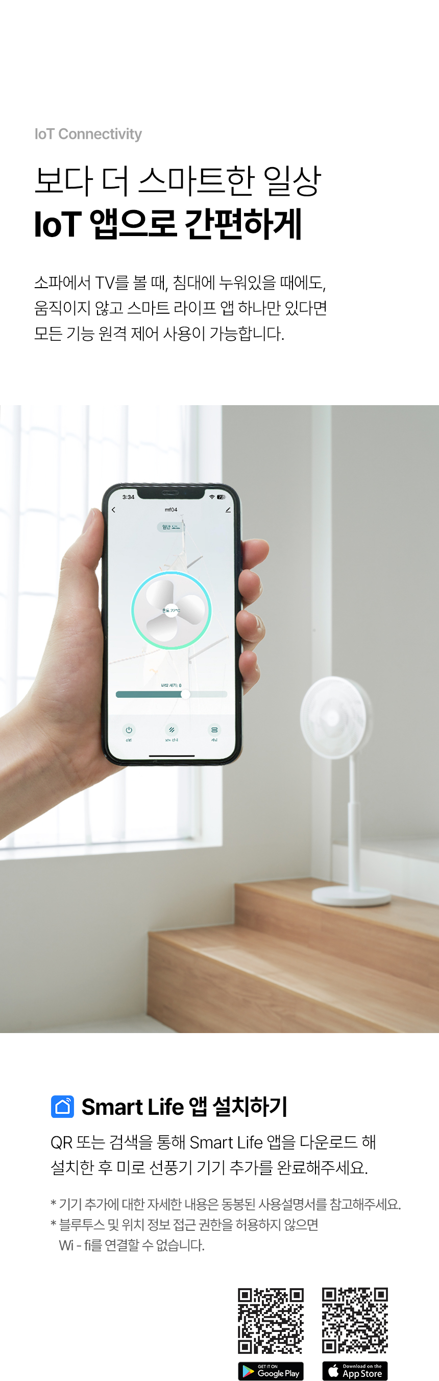 먼저 스마트폰에 'Smart Life' 앱을 설치해주세요. QR 코드를 스캔하면 바로 다운로드 페이지로 연결돼요. 앱을 설치한 후에는 간단한 몇 단계만 거치면 미로 바람이지와 연결할 수 있어요.