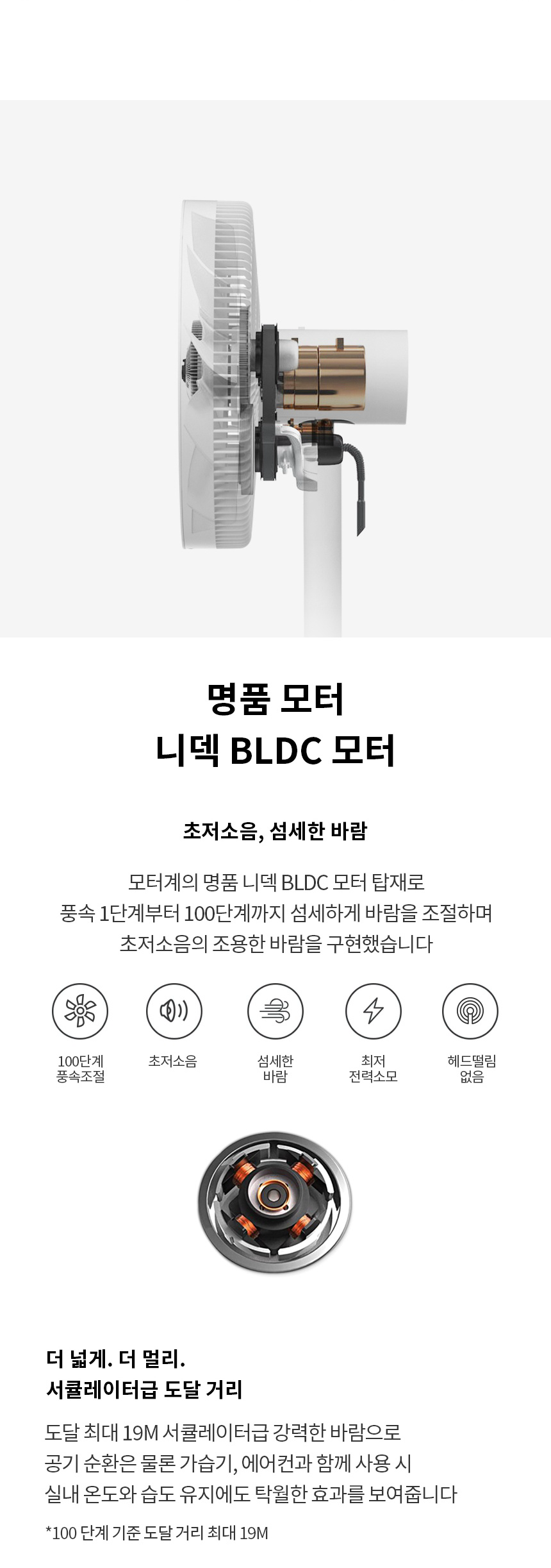 BLDC 모터 장착! 100단계 바람세기 조절, C타입으로 간편한 사용, 최대 8시간 타이머 설정, 자녀보호 차일드락!